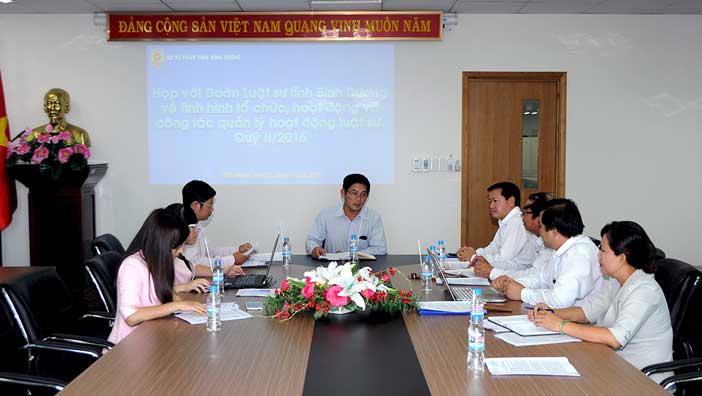 Ngày 21/6/2016, Sở Tư pháp tỉnh Bình Dương tổ chức cuộc họp định kỳ Quý II năm 2016 theo Quy chế phối hợp với Ban Chủ nhiệm Đoàn Luật sư tỉnh Bình Dương tại Hội trường A, Sở Tư pháp.