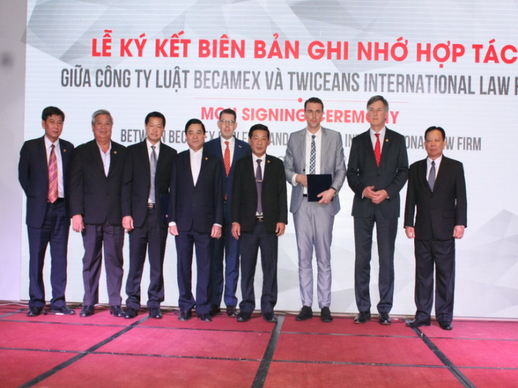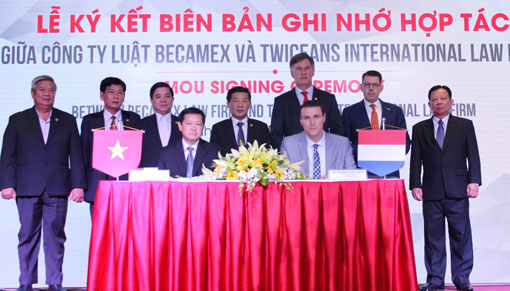 Chiều 9-3, tại Khách sạn Becamex thành phố mới Bình Dương đã diễn ra Lễ ký kết Biên bản ghi nhớ hợp tác giữa Công ty Luật B.C.M và Công ty Luật Quốc tế Twiceans (Hà Lan).
