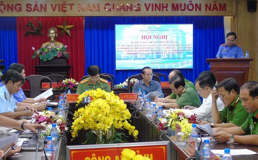 Ngày 27/11/2019, tại trụ sở Công an tỉnh Bình Dương, lãnh đạo liên ngành Công an nhân dân, Viện kiểm sát nhân dân, Tòa án nhân dân, Sở Nông nghiệp và Phát triển nông thôn - Cục Hải quan tỉnh và Đoàn luật sư tỉnh Bình Dương đã ký các Quy chế phối hợp liên ngành trong việc thực hiện công tác theo quy định pháp luật.